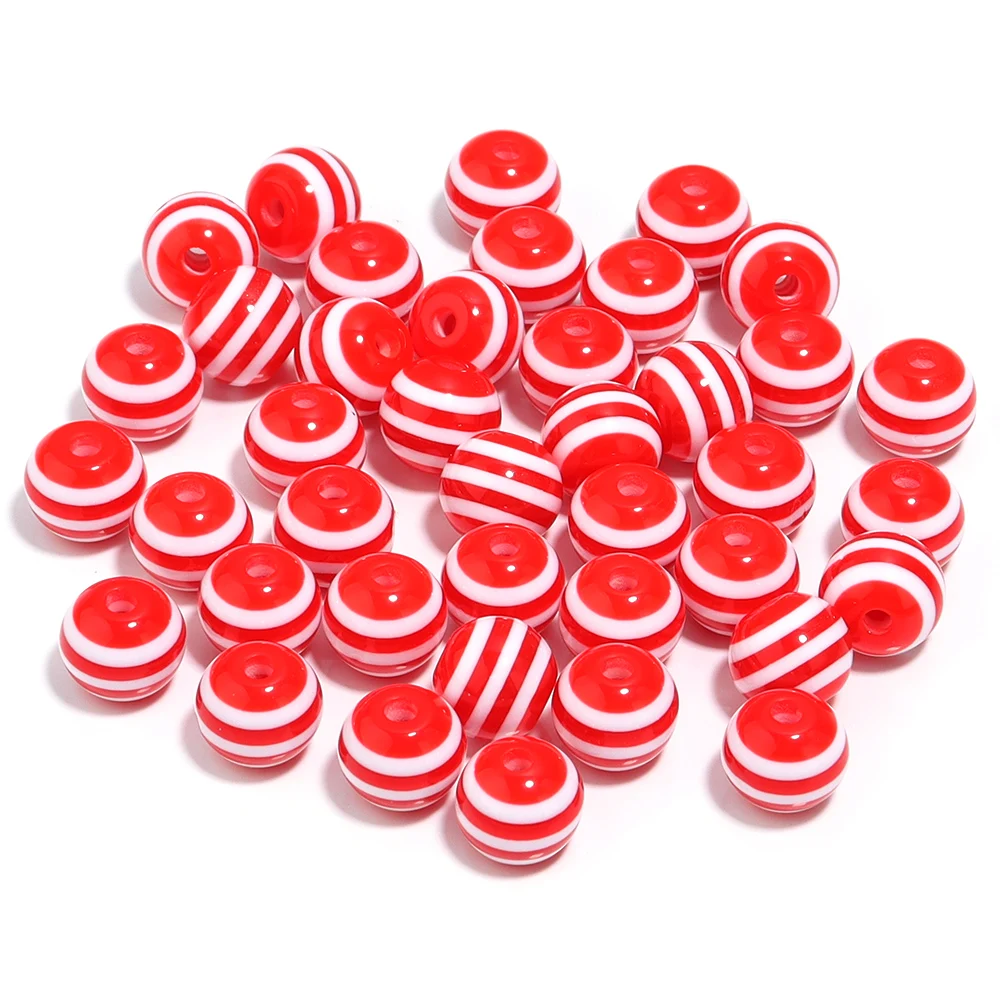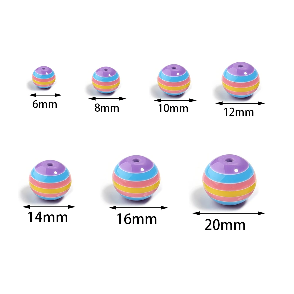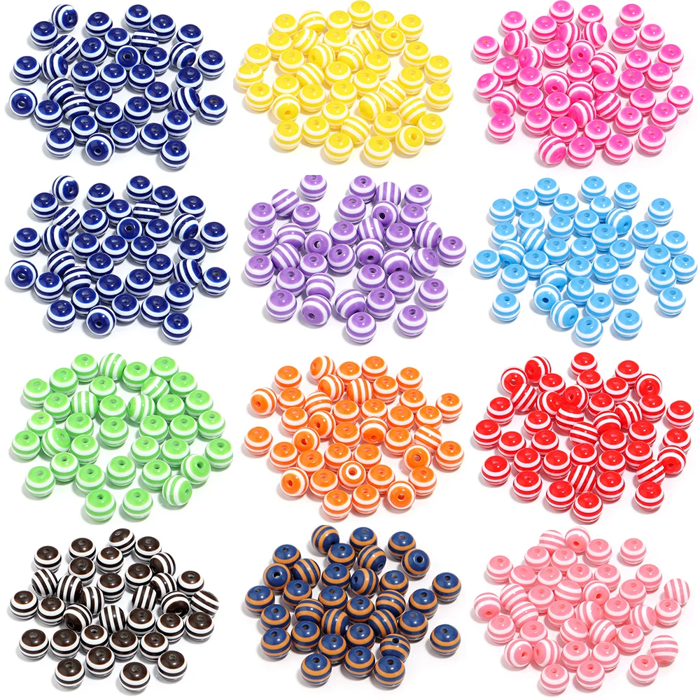 10-100pcs Resin Stripe Round Beads 6/8/10/12/14/16/20mm Loose Spacer Beads For Jewelry Making Phone Chain DIY With Beadable Pen