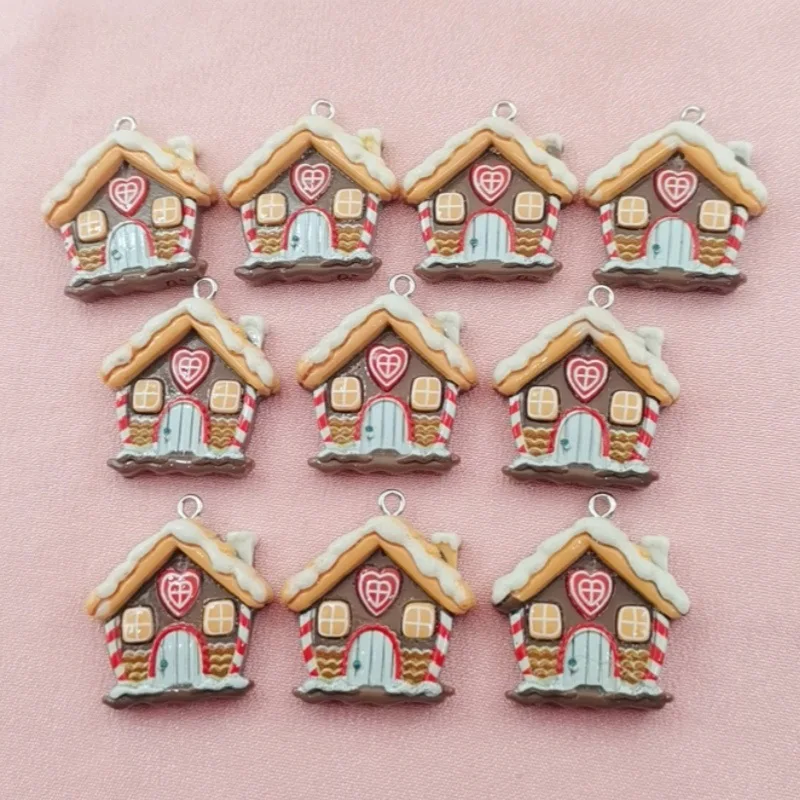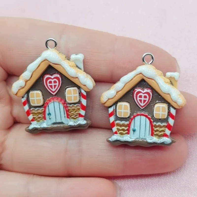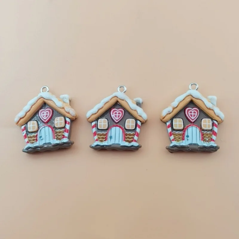 10 pieces 26*29mm Christmas Snow House resin pendants diy handmade jewelry accessories making for Earring keychain Bag pendant