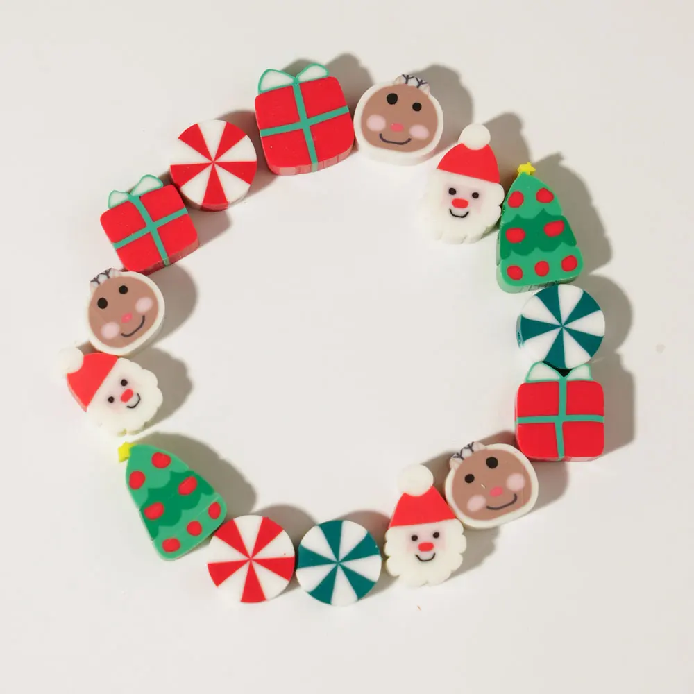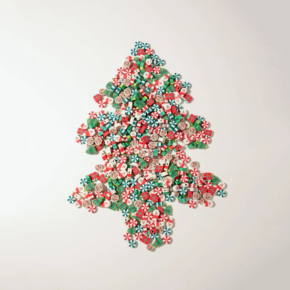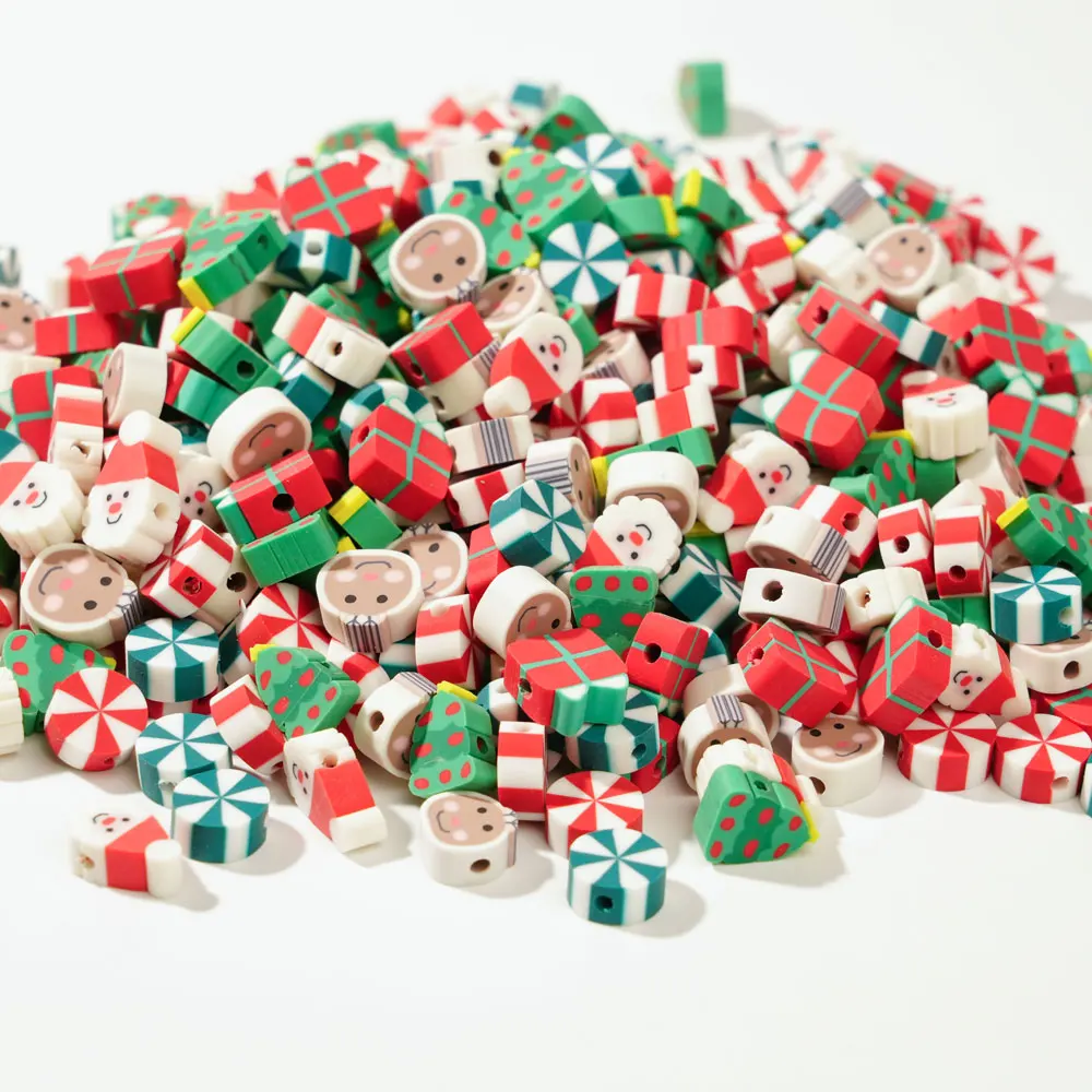 100/200pcs Christmas Polymer Clay Beads Christmas Tree Santa Claus Spacer Loose Beads for Earrings Necklace Bracelet Jewelry Mak