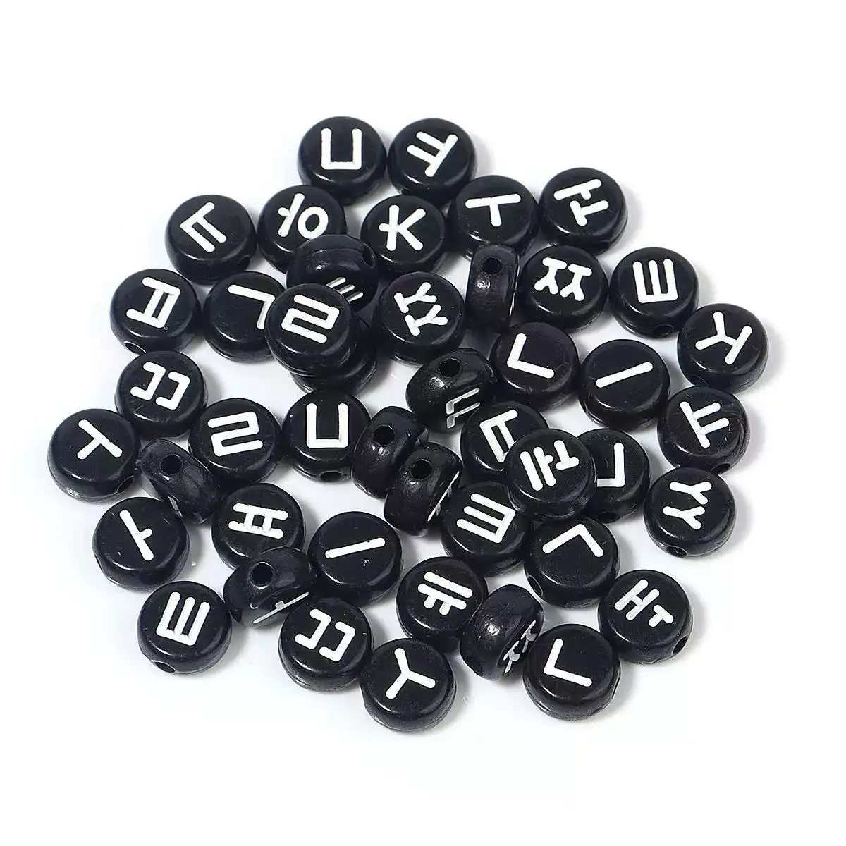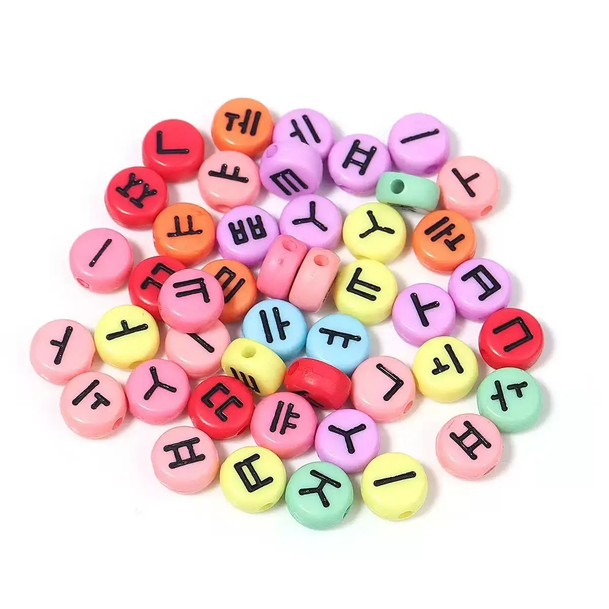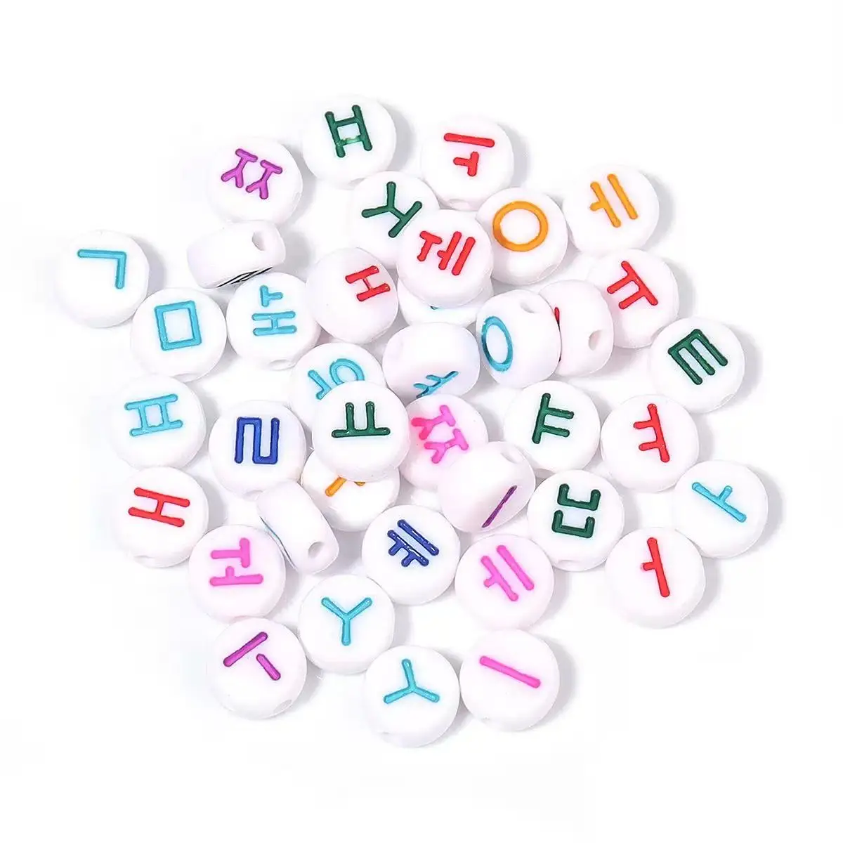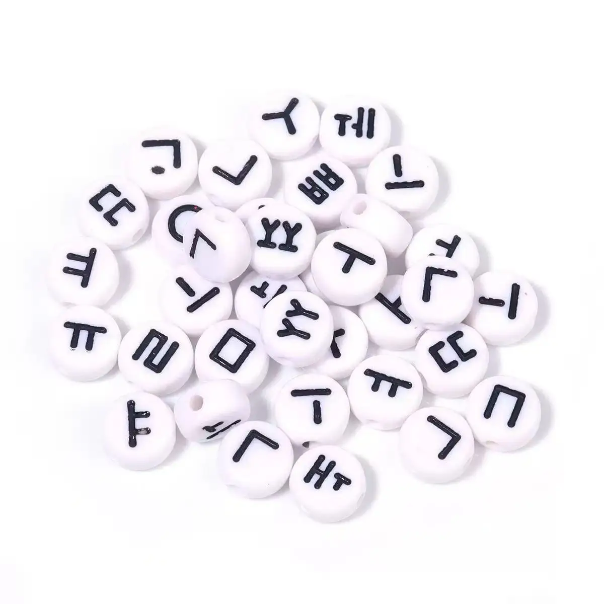 100pcs 7mm Mix Korean Alphabet Letters Acrylic Round Korea Loose Beads For Jewelry Making DIY Bracelet Necklace Accessories