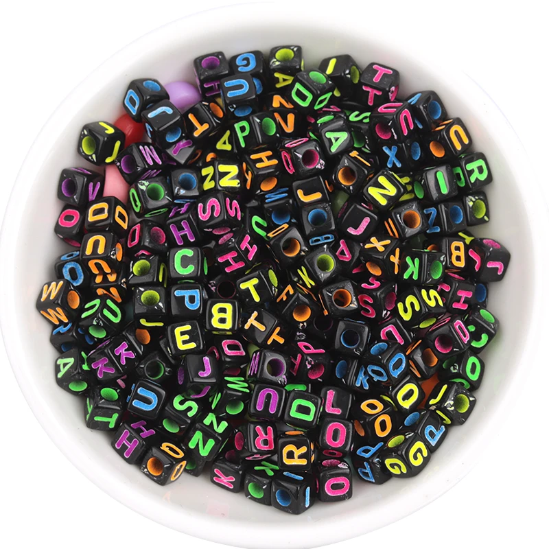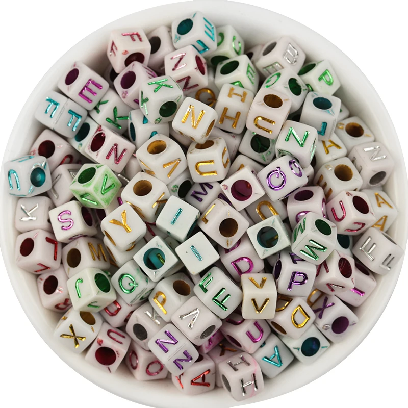 100Pcs/Lot Trendy Acrylic Square Alphabet Beads Large Hole Letter Loose Spacer Bead Jewelry Handmade Bracelet Making Supplies