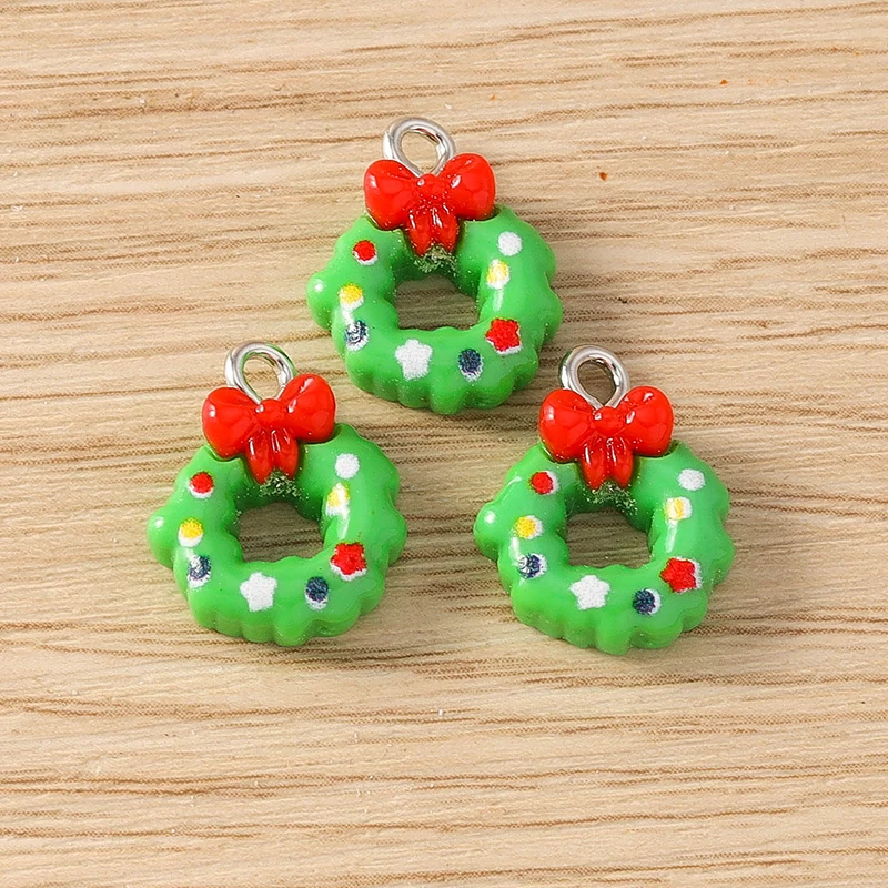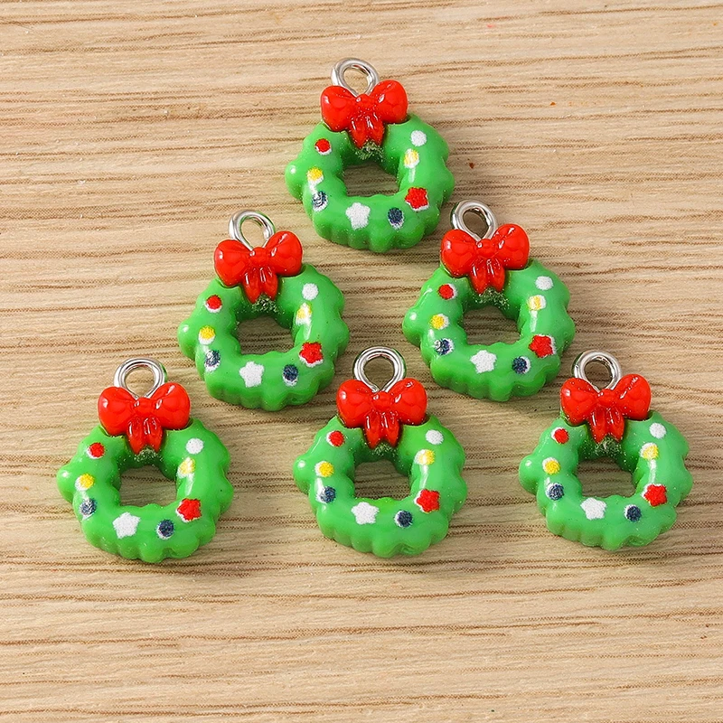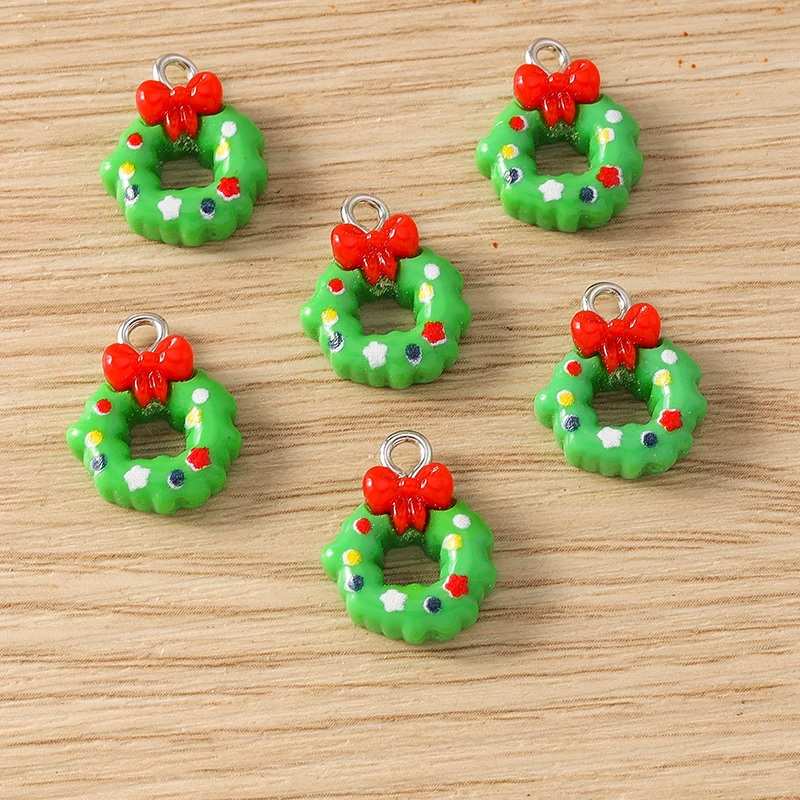 10pcs 11x16mm Cute Resin Christmas Wreath Charms Pendants for Jewelry Making Earrings Necklaces Bracelets DIY Crafts Accessories