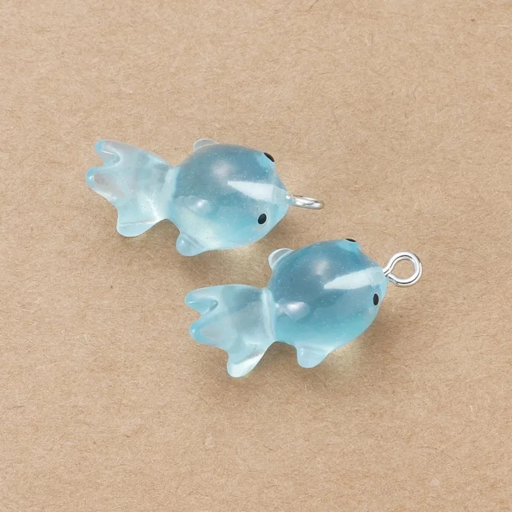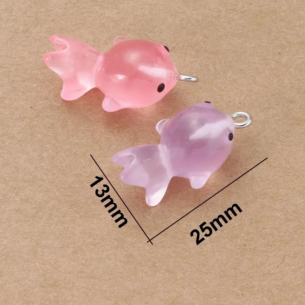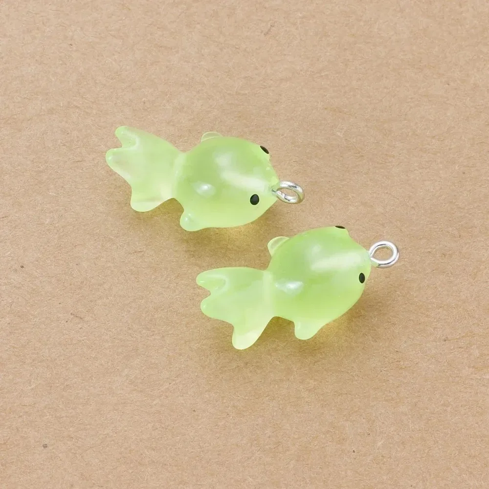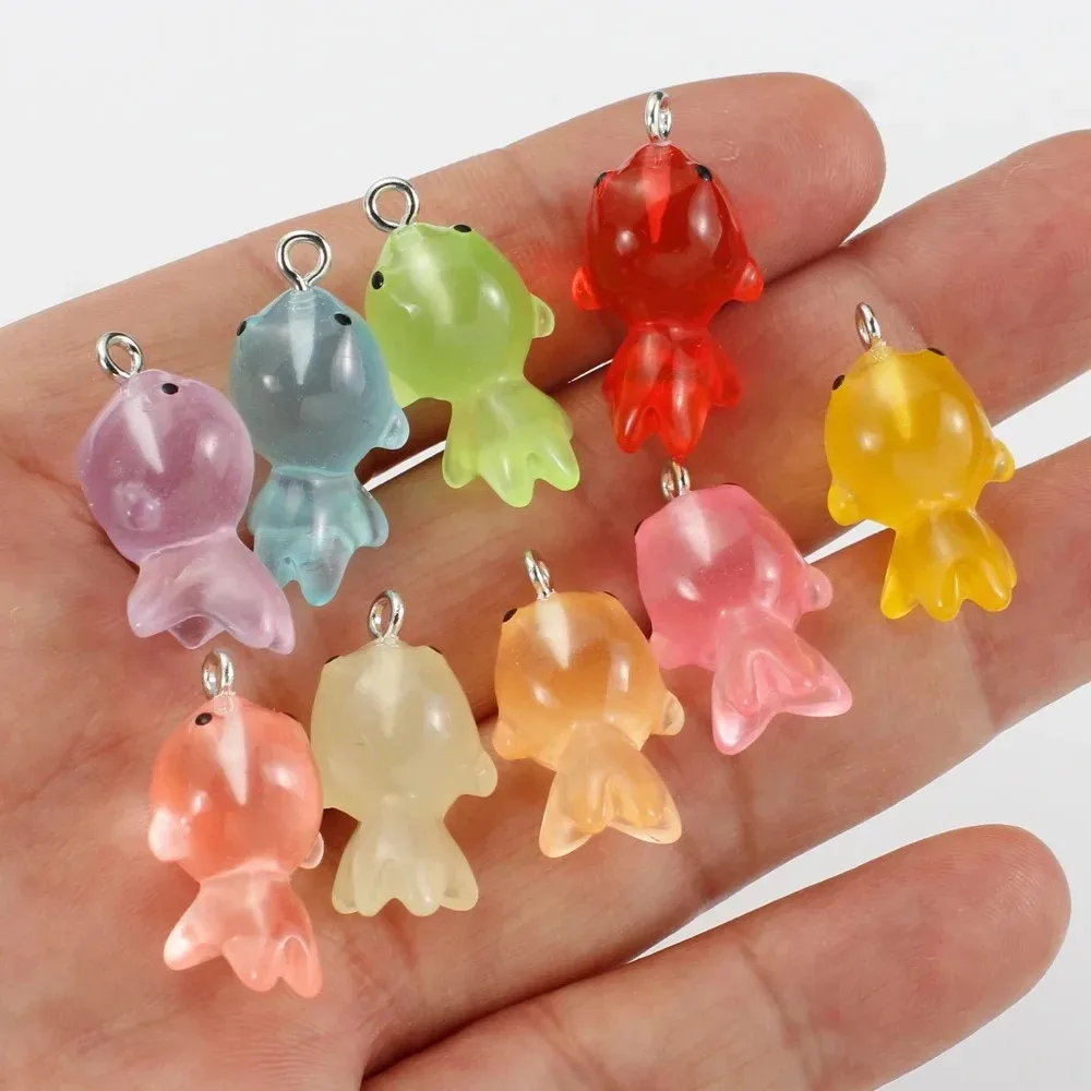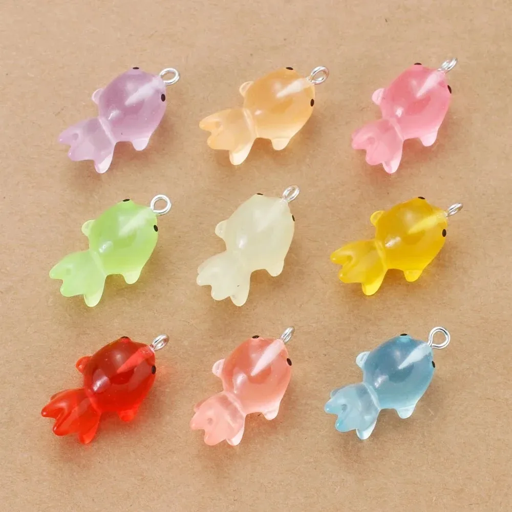 10Pcs 3D Cute Luminous Goldfish Fish Resin Pendants Charms Diy Earrings Necklace Keychain for Jewelry Making Supplies Findings