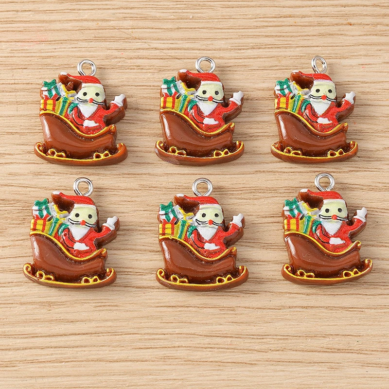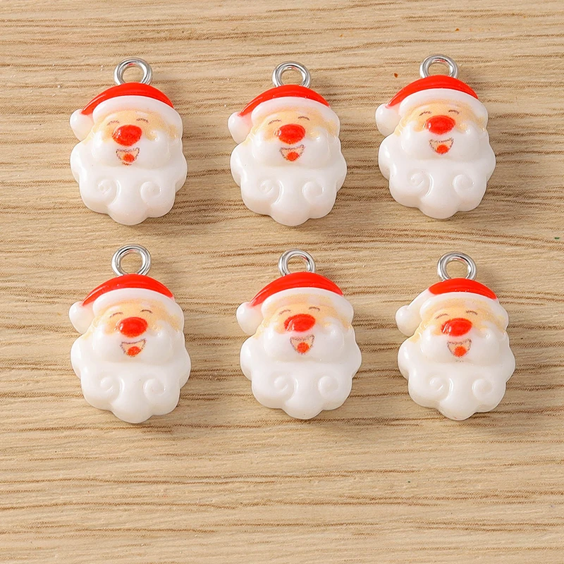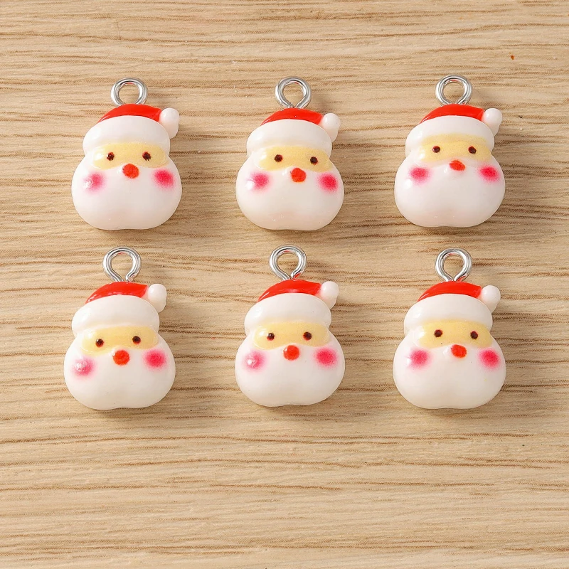 10pcs Cartoon Christmas Charms Resin Deer Santa Claus Tree Charms Pendants for Jewelry Making DIY Necklaces Earrings Crafts Gift