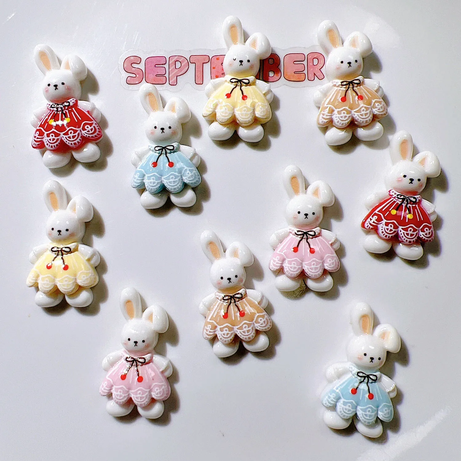 10PCS Cartoon cute rabbit resin pendant diy handmade princess dress rabbit accessory making for Keychain Phone case decoration