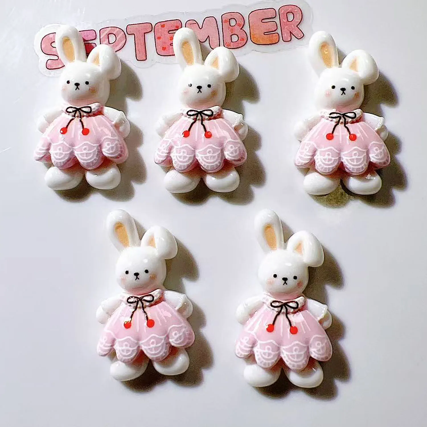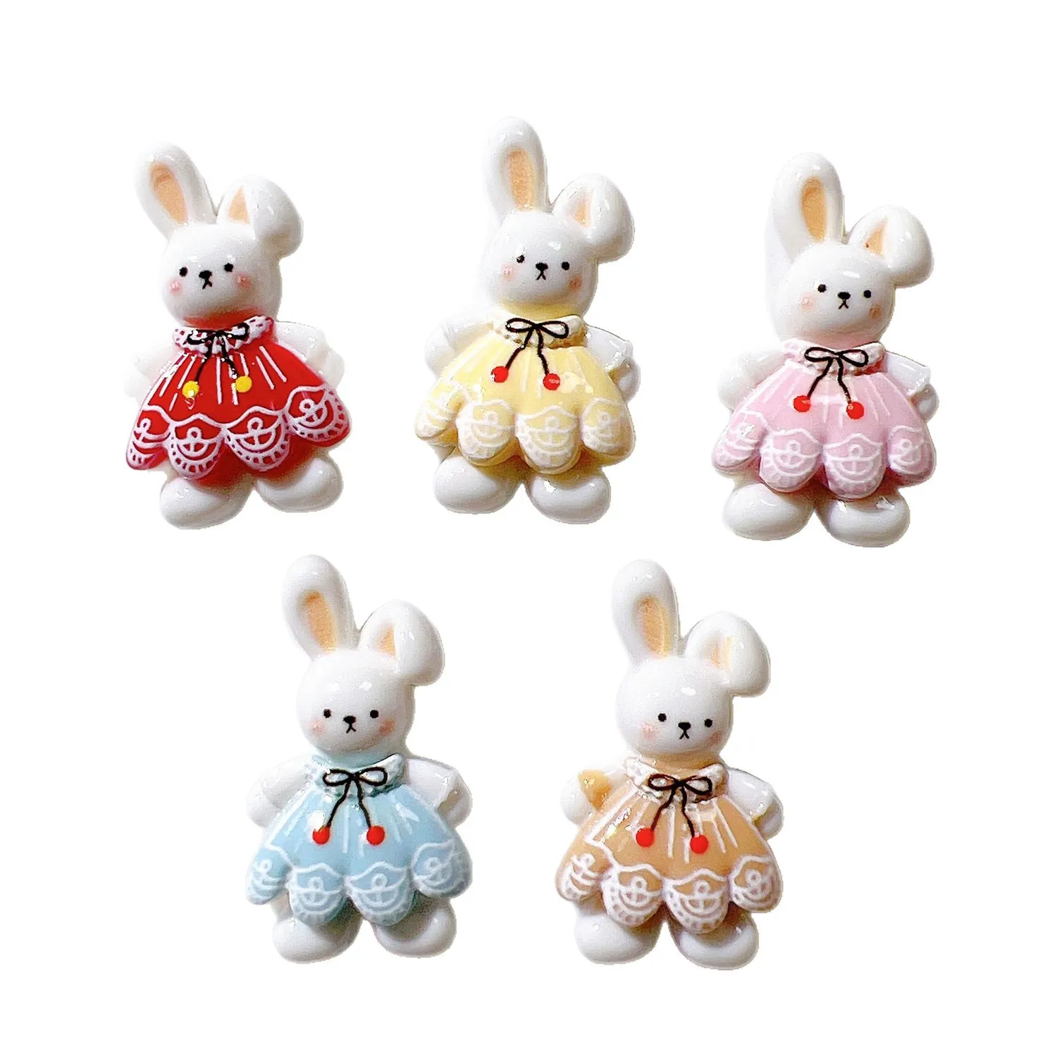 5PCS Cartoon cute rabbit resin pendant diy handmade princess dress rabbit accessory making for Keychain Phone case decoration