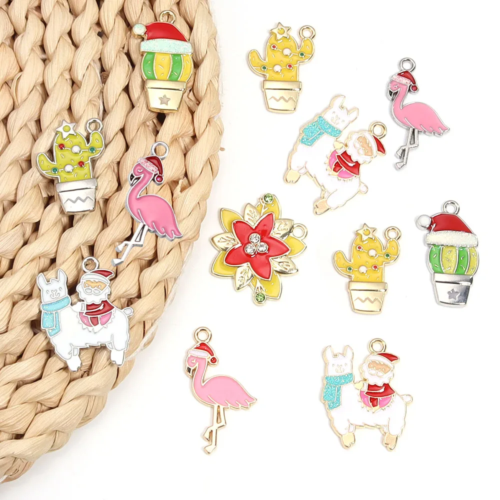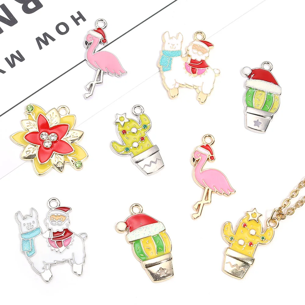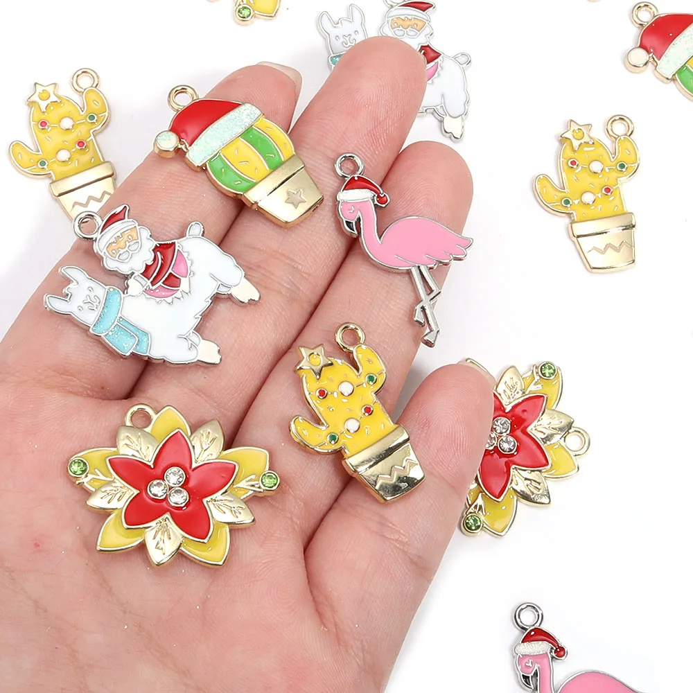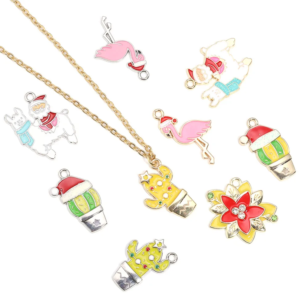 10pcs Christmas Enamel Charms Cute Alloy Drop Oil Animals Plant Pendants For DIY Jewelry Making Necklace Earrings Accessories
