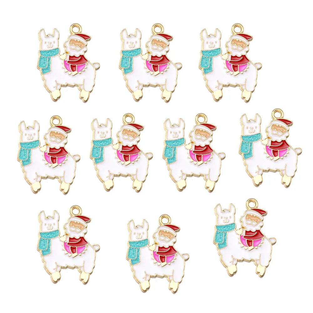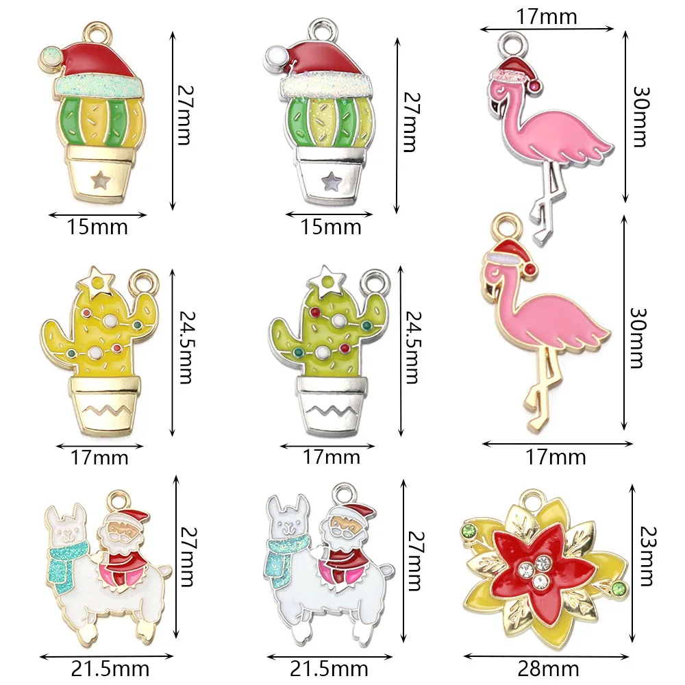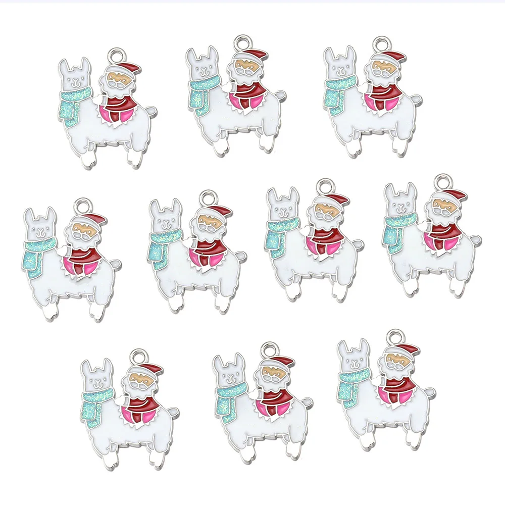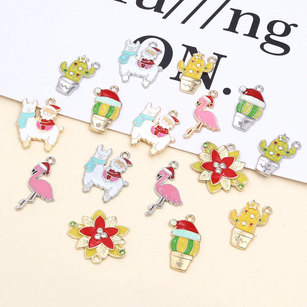 10pcs Christmas Enamel Charms Cute Alloy Drop Oil Animals Plant Pendants For DIY Jewelry Making Necklace Earrings Accessories