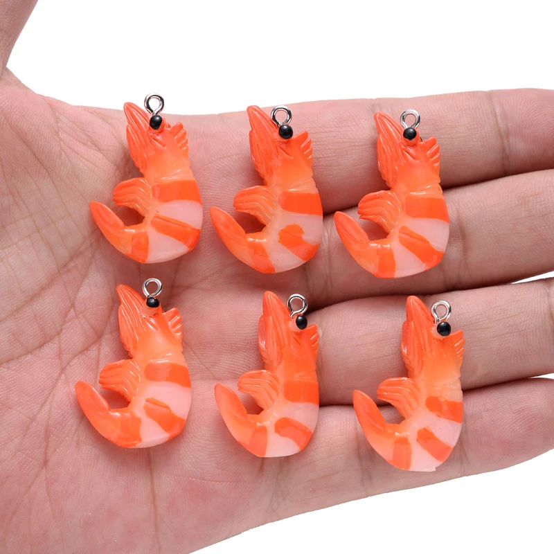 10Pcs Cute 3D Design Simulation Lobster Shrimp Resin Pendants Acrylic Cartoon Food Animal Charms for Jewelry Making Necklace