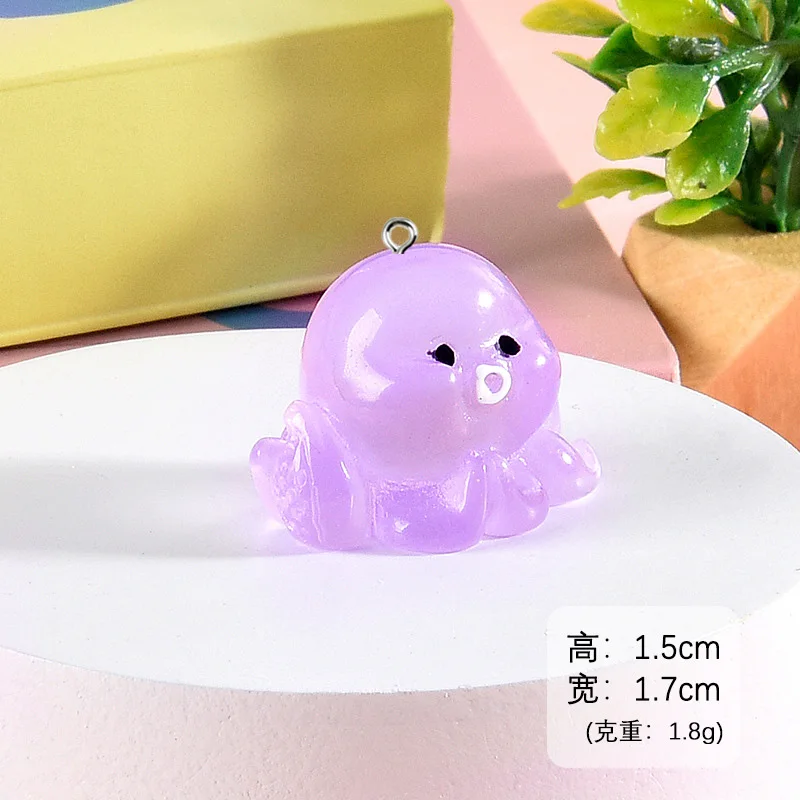 10pcs Cute 3D Luminous octopus Marine animal Charms Resin Pendant For Jewelry Making Accessories DIY Earrings Necklace Keychain