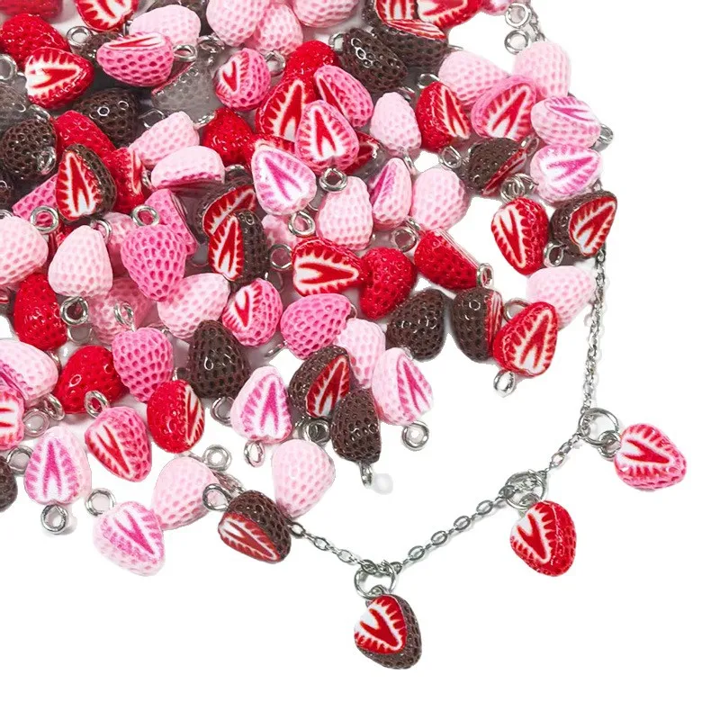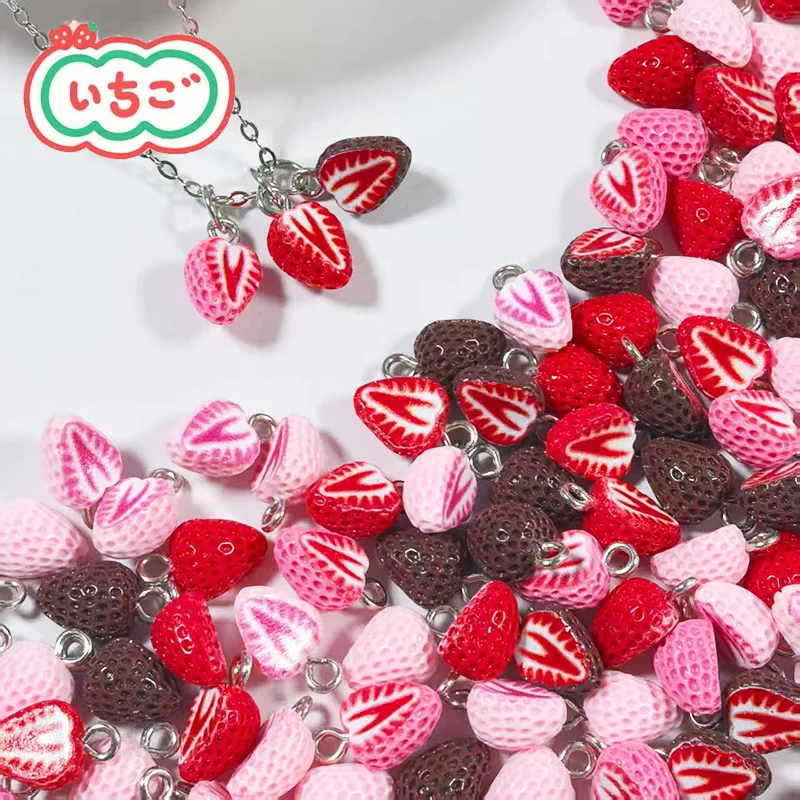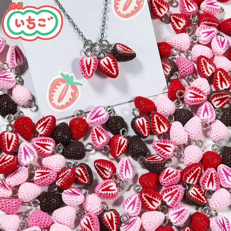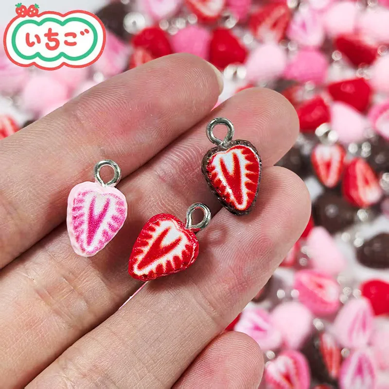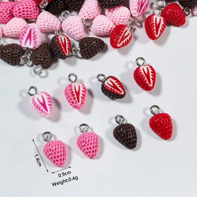 10pcs Cute mini simulated strawberry resin pendant diy sweet chocolate strawberry pendant handmade Earrings necklaces keychains