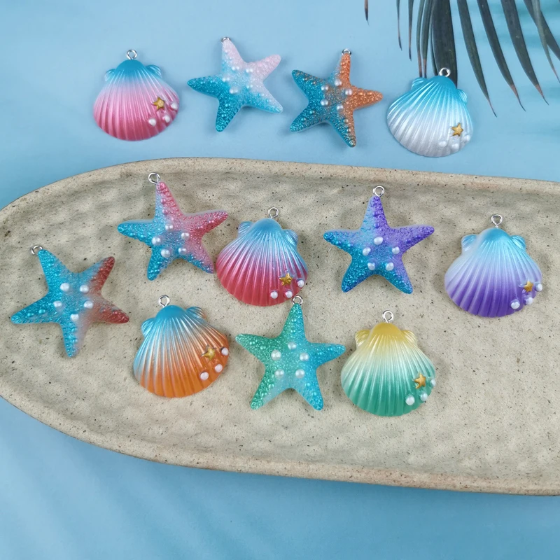 10Pcs Magic Color Shell Starfish Resin Charms Cabochon Jewelry Making DIY Pendant Earrings Keychain Bracelet Accessories