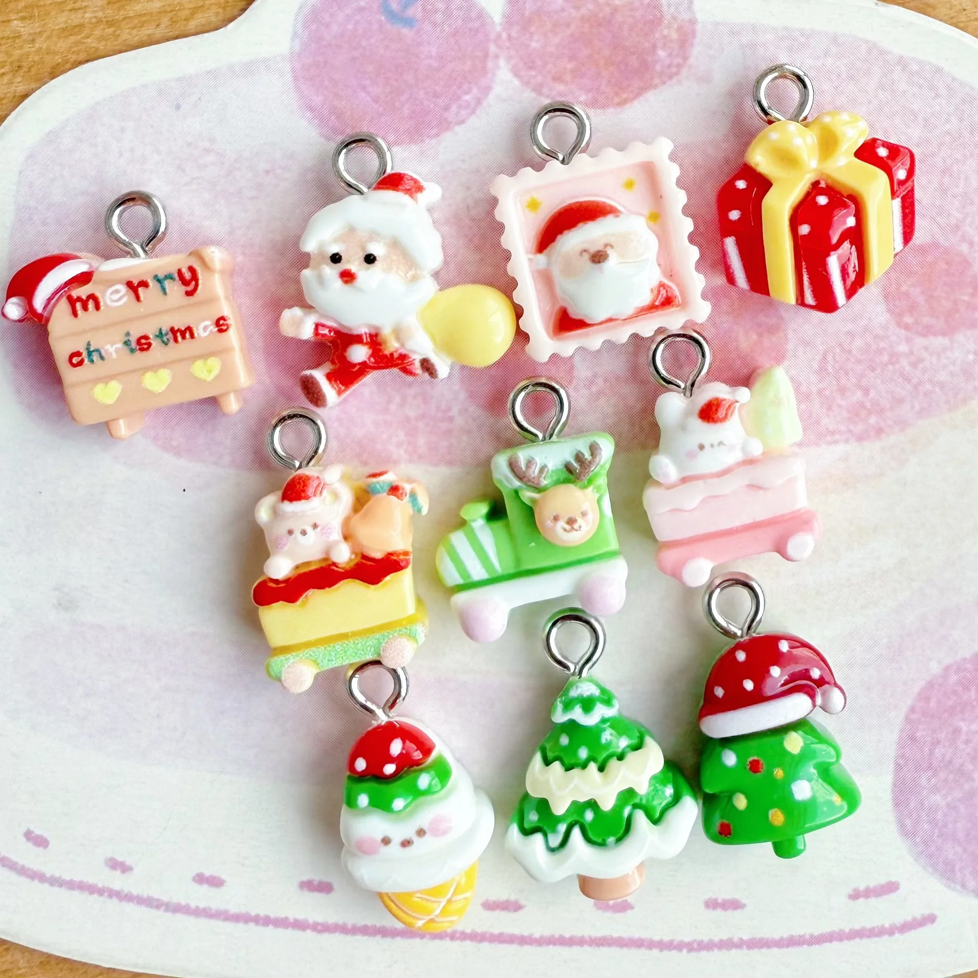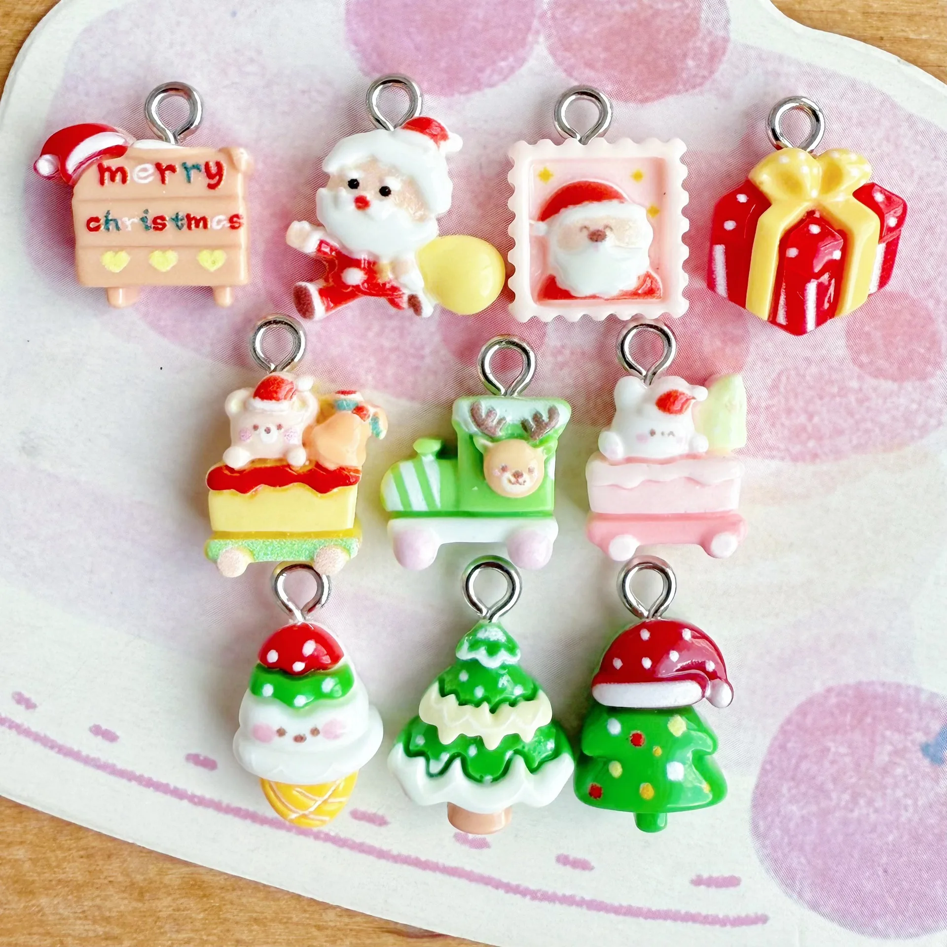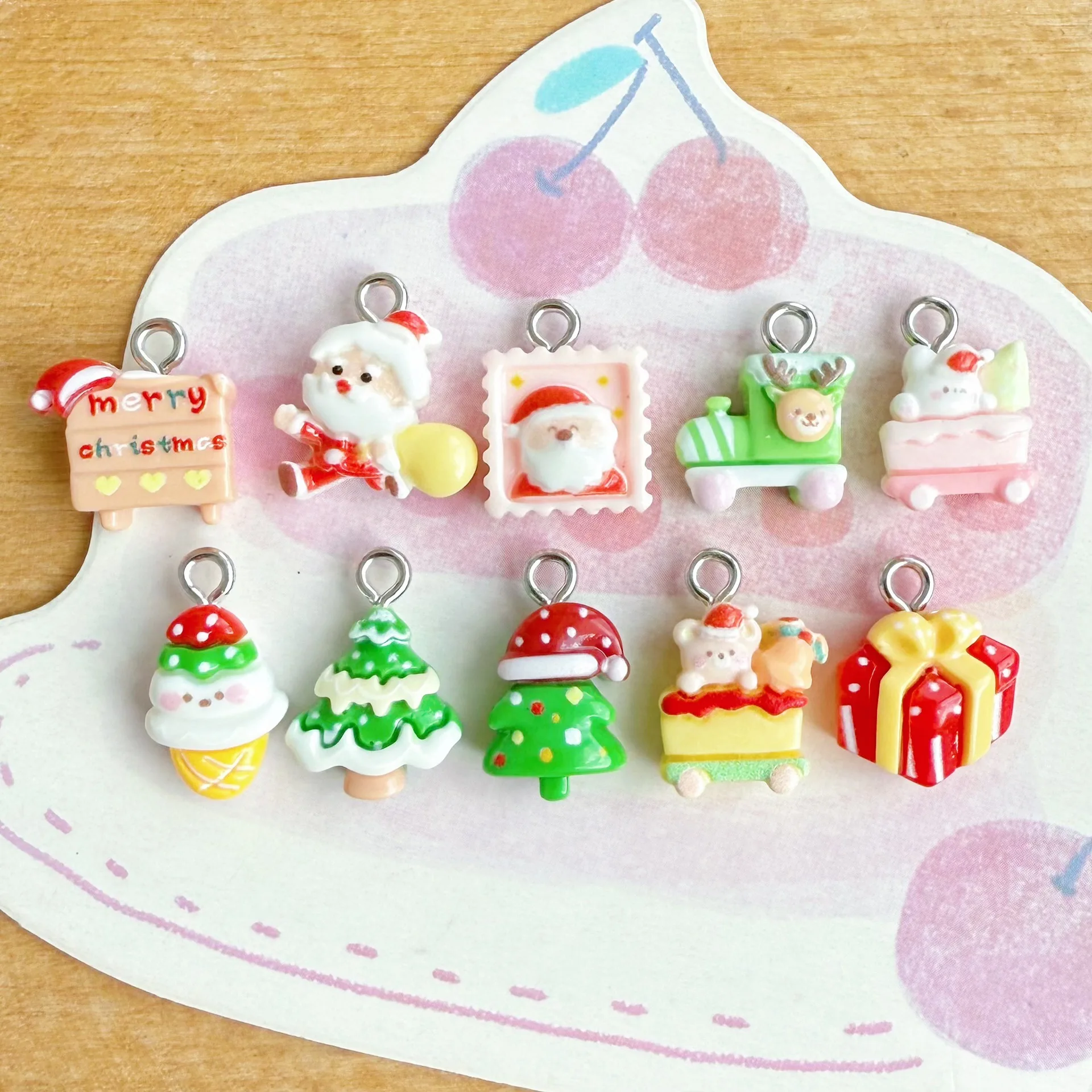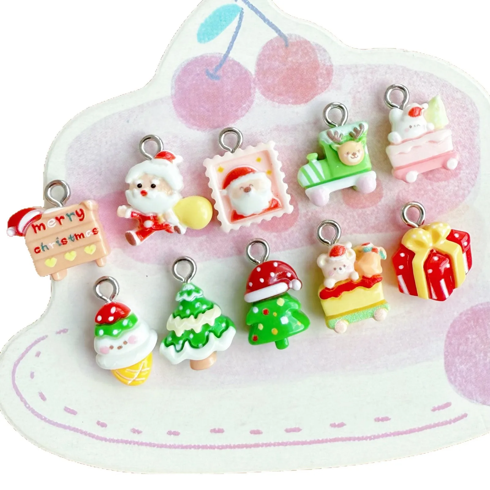 10pcs mini 11*10mm Christmas gift resin pendant diy handmade resin accessories making for Necklace bracelet keychain Bag pendant