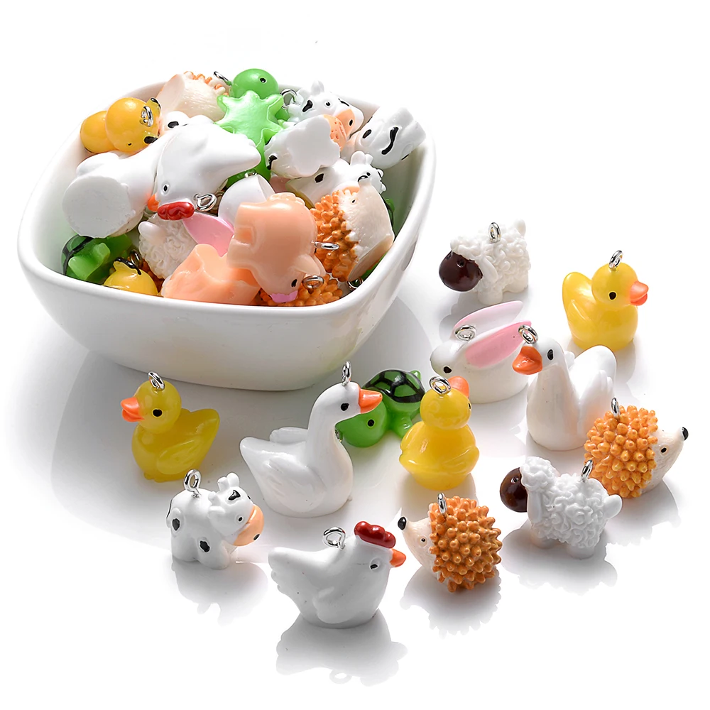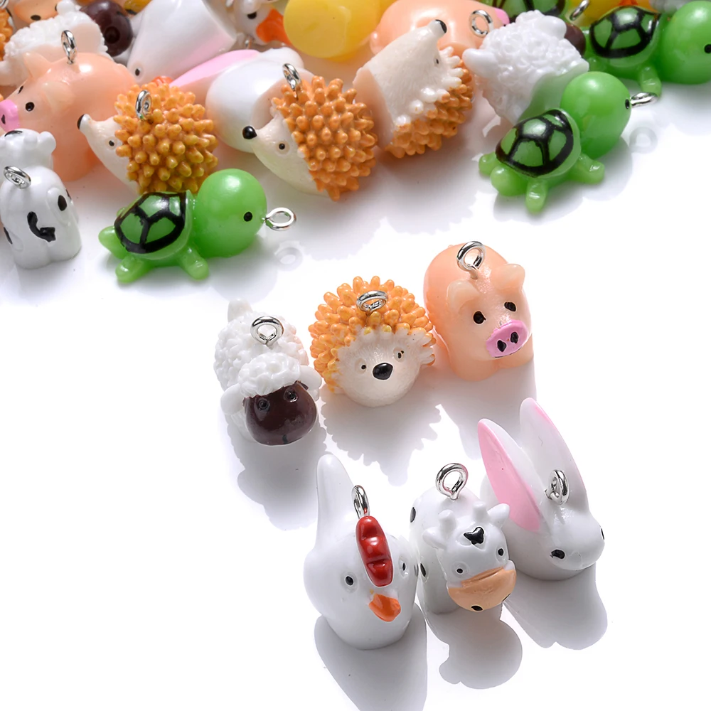 10pcs Mix Animal Resin Charms Beads Chicken Turtle Pig Hedgehog Charms For Making Jewelry Supplies DIY Craft Necklace