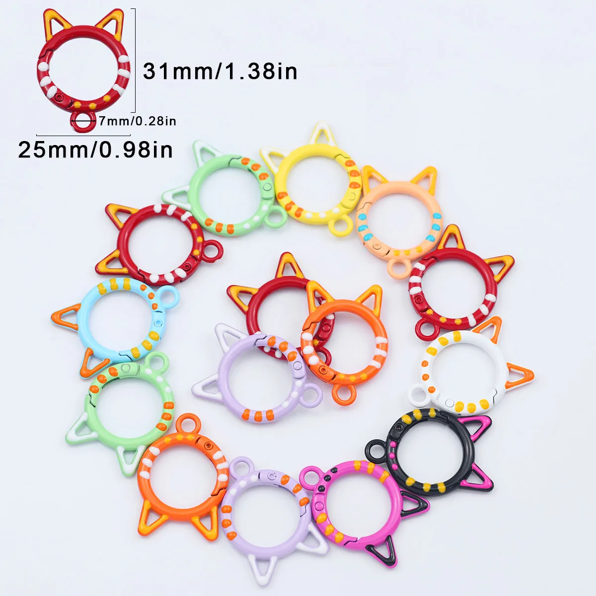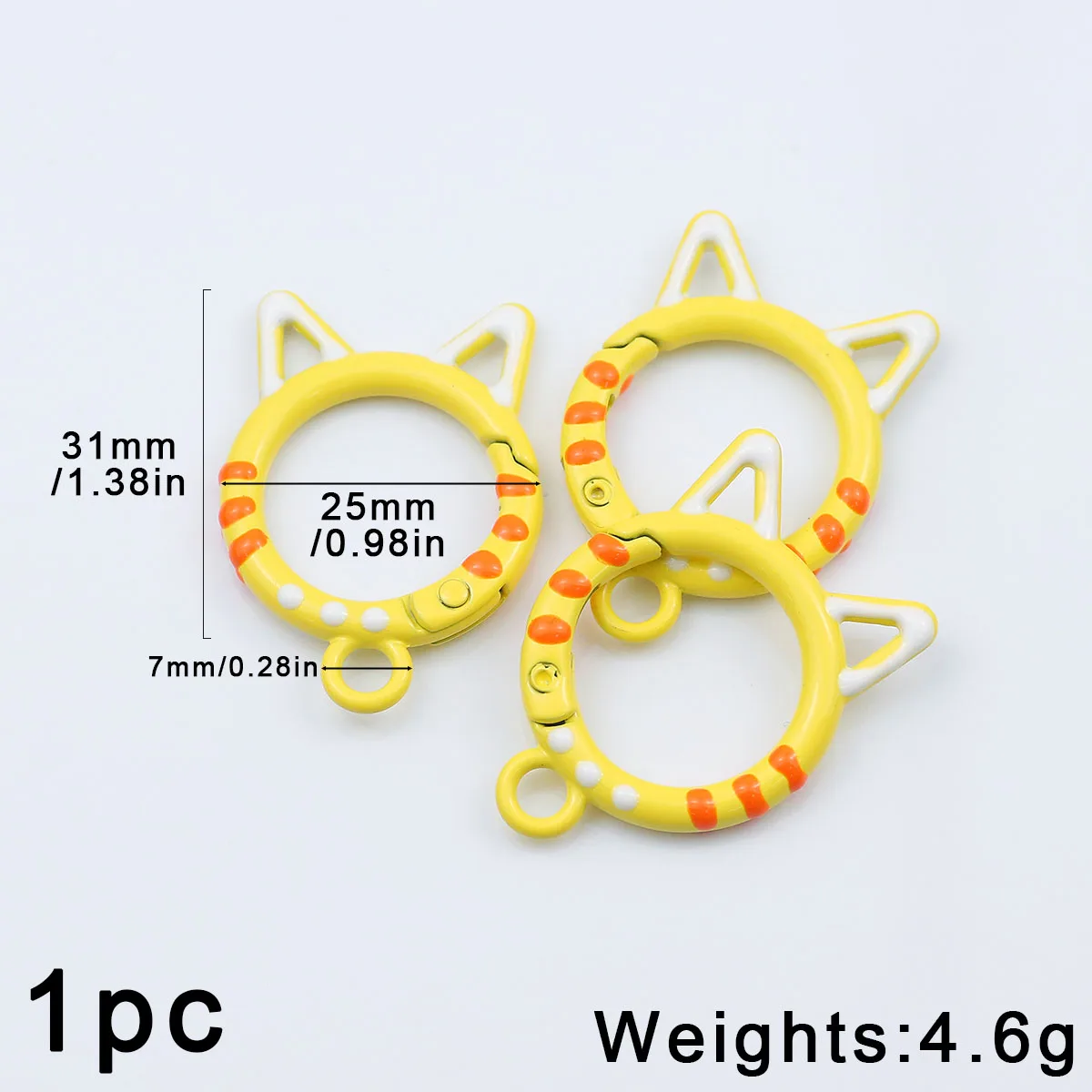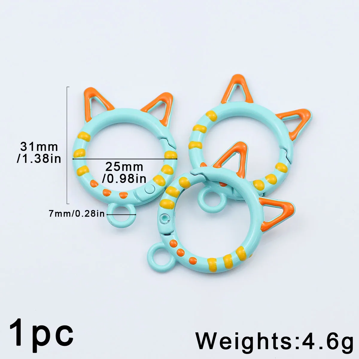 25×31mm Multi-color Mixed Baking Lacquer Drip Oil Cat Keychains Spring Fob For Jewelry Making Materials DIY Keychain Accessories