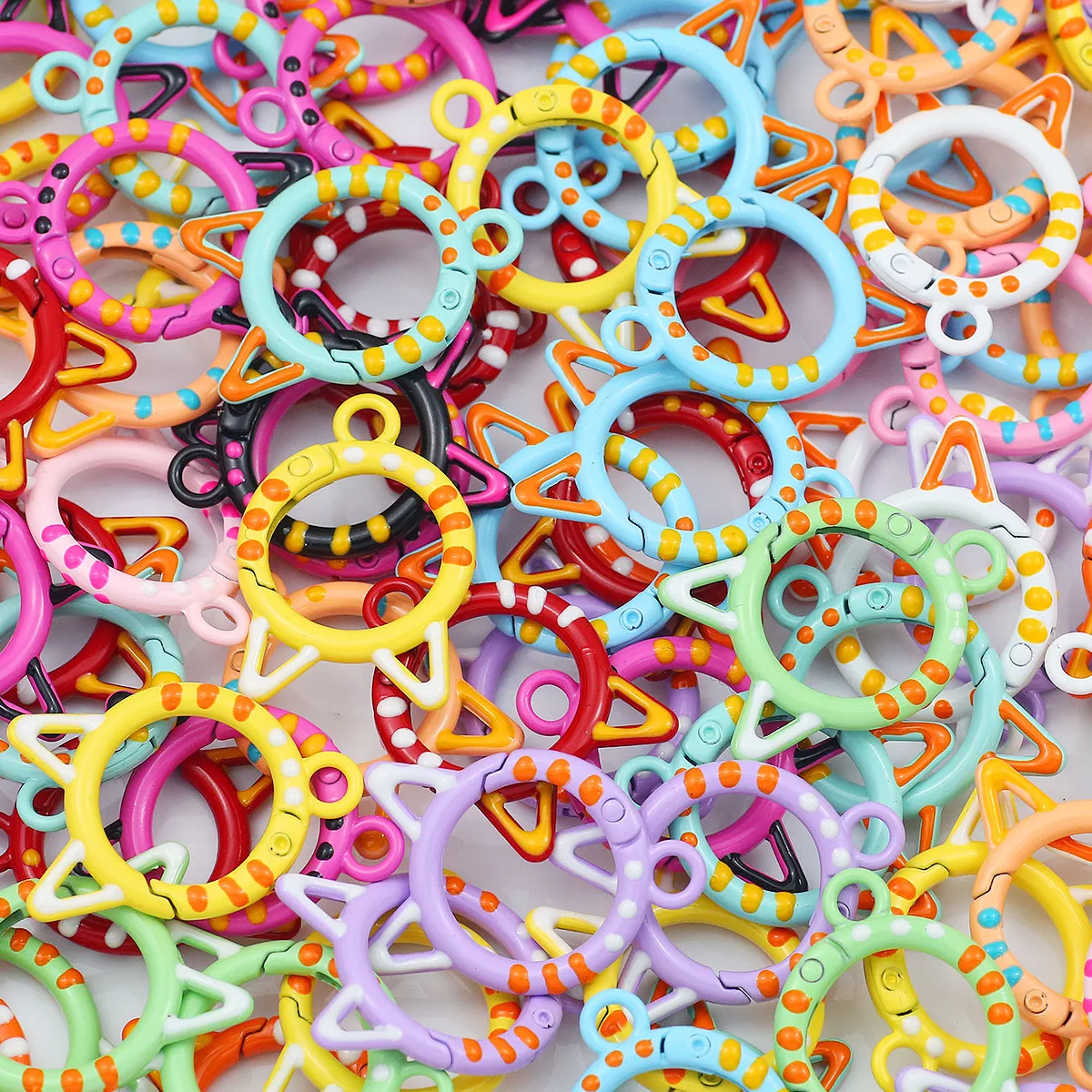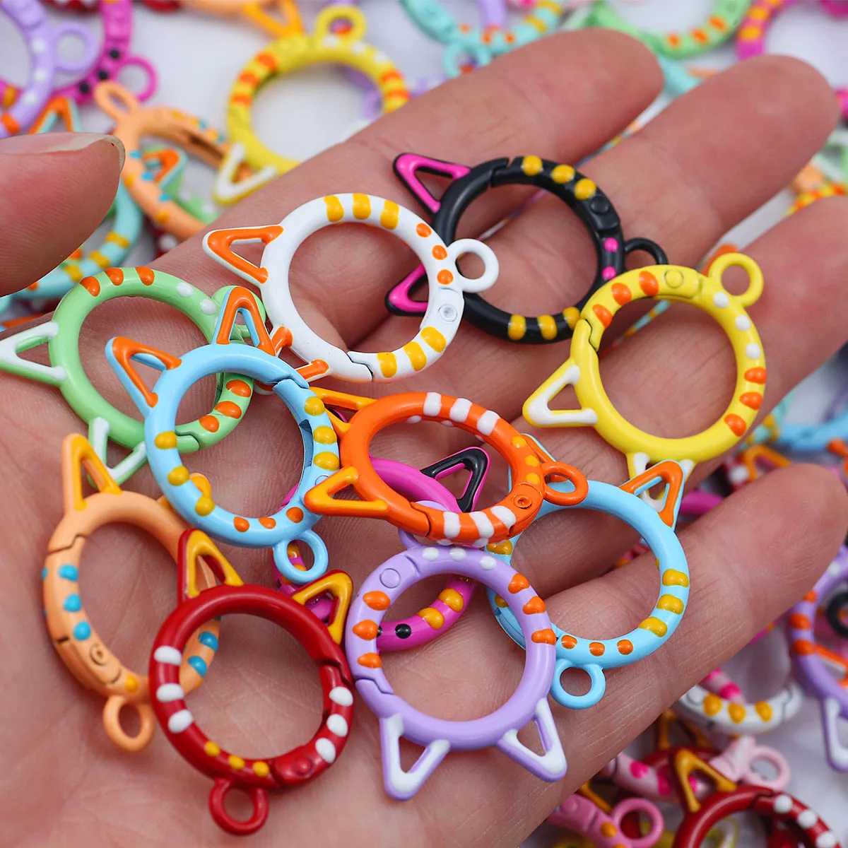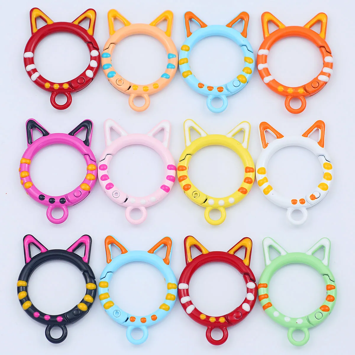 25×31mm Multi-color Mixed Baking Lacquer Drip Oil Cat Keychains Spring Fob For Jewelry Making Materials DIY Keychain Accessories