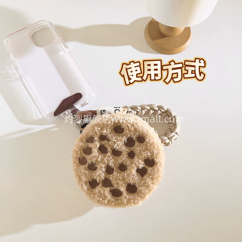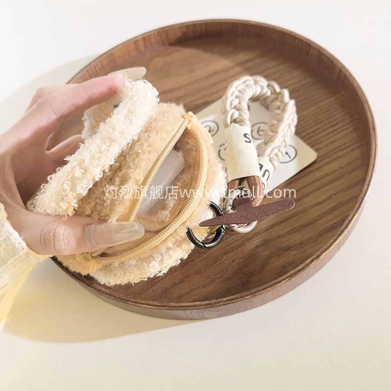 Compact and portable donut coin purse nylon lanyard suitable for mobile phone case fun plush cute women’s storage keychain mobile phone chain student portable anti-lost ccd portable strong wrist strap