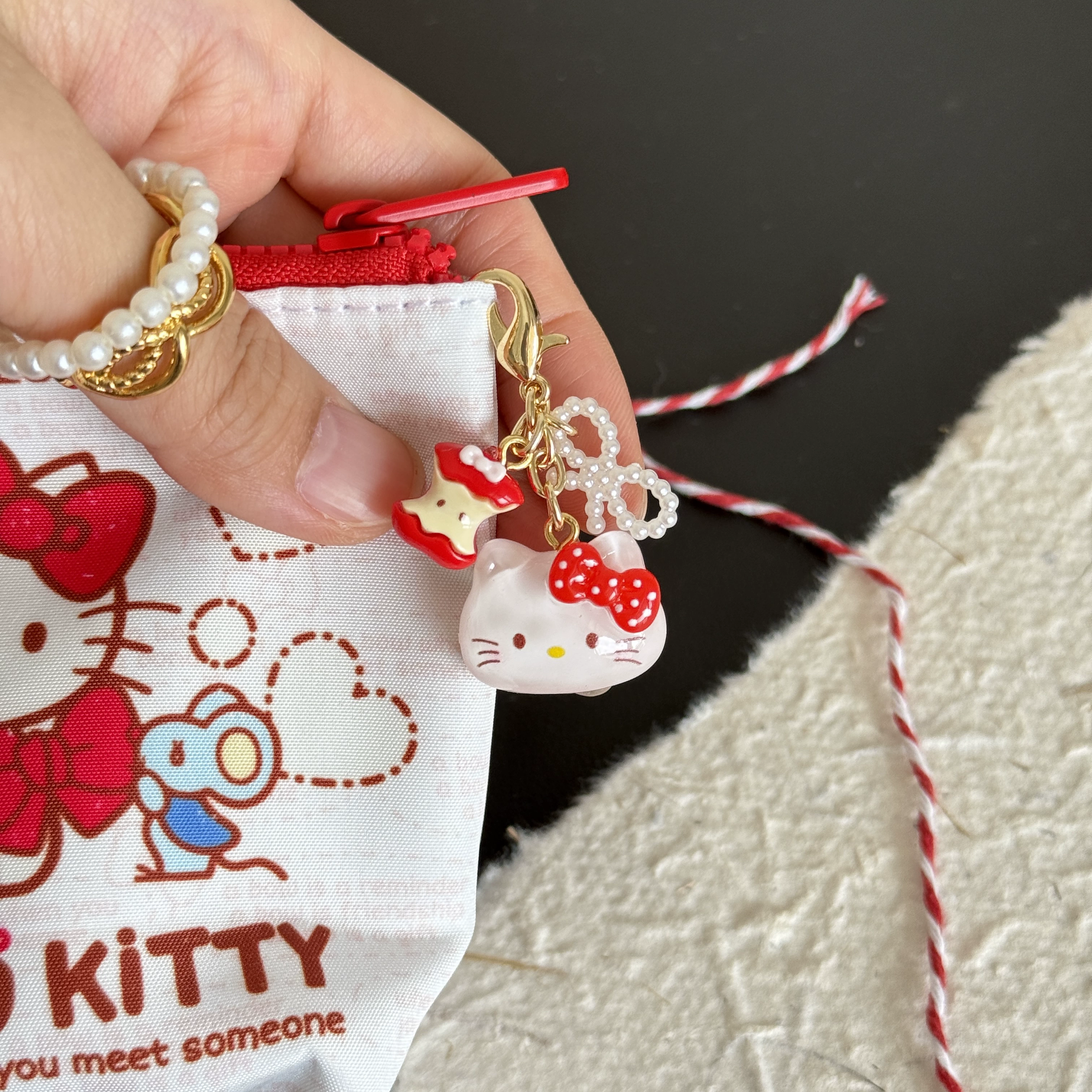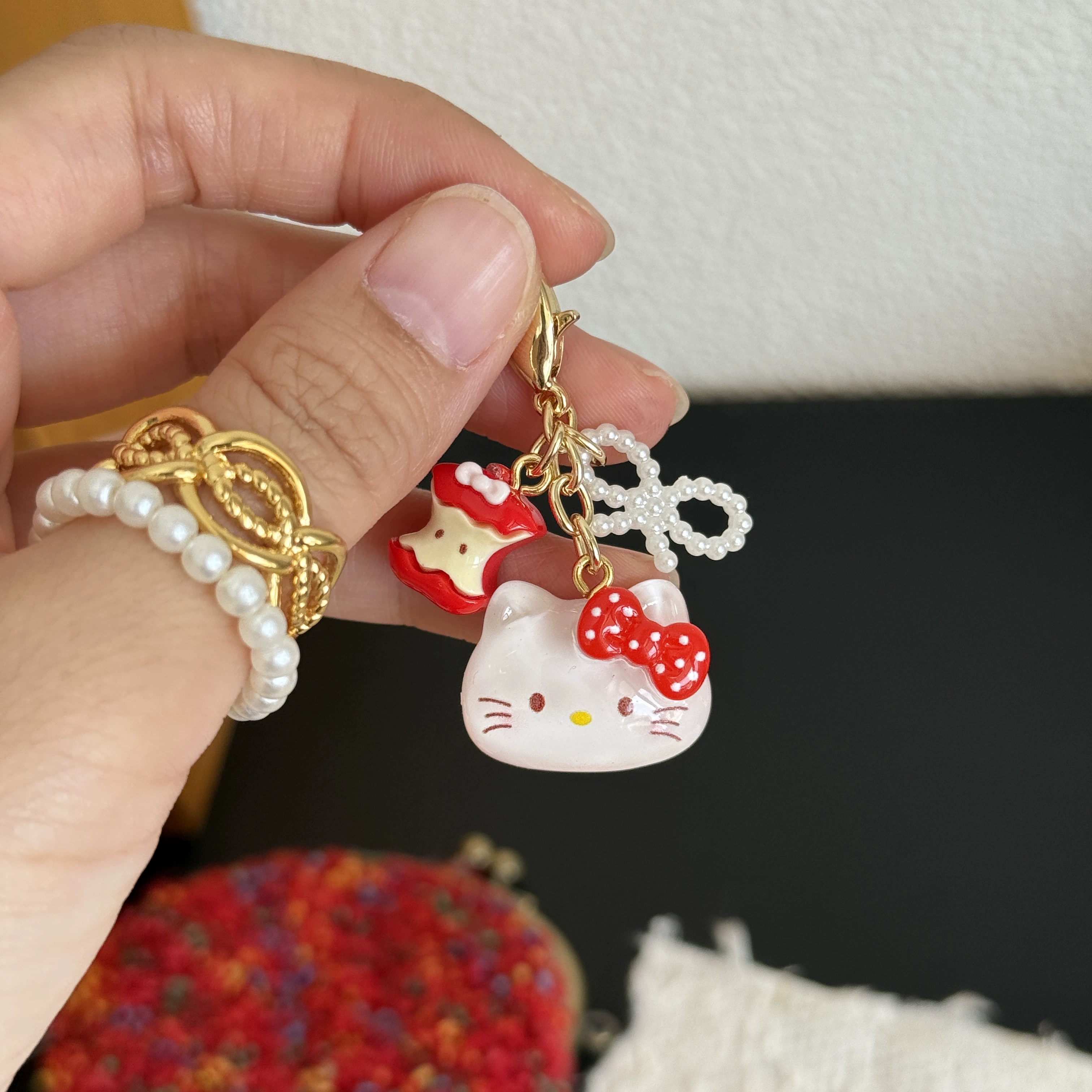 Original handmade cute cartoon apple kitten flip bag zipper buckle women’s storage bag pendant mobile phone key chain