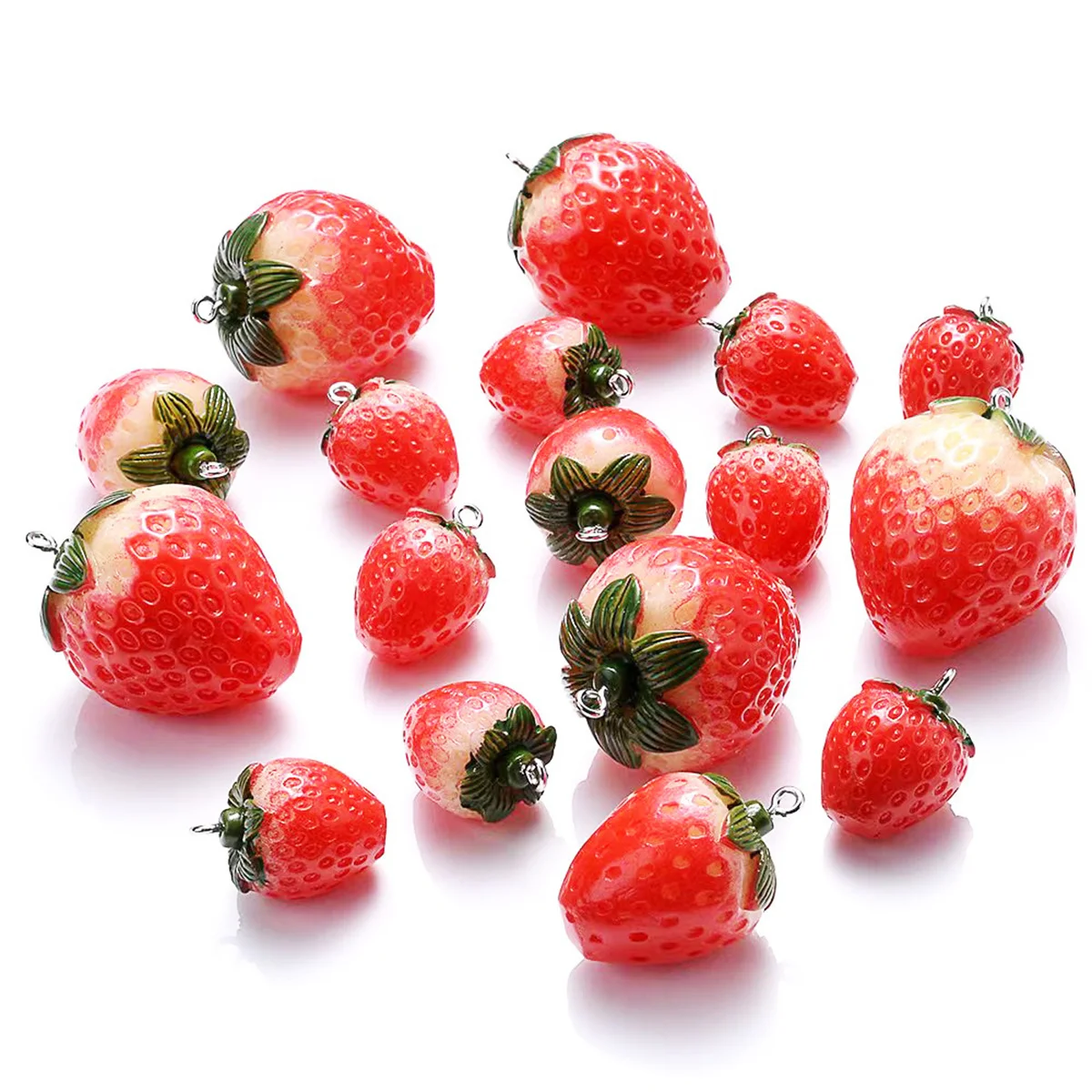 SG04 5pcs Strawberry Fruit Resin Miniature Food Art Supply Charm Beads Jewelry Making DIY Earrings Bracelet Necklace