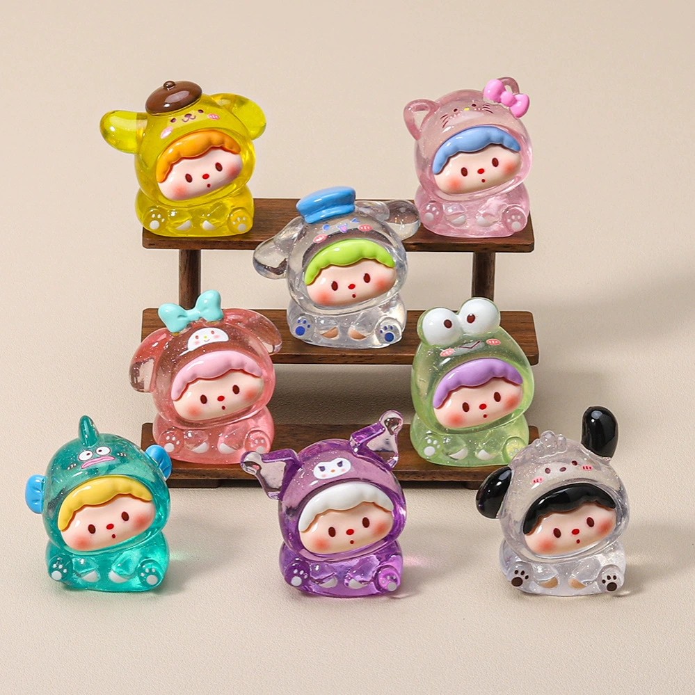 Transparent and fine glitter Sanrio crooked head cartoon cute blind bag handmade accessories keychain desktop hanging ornaments trendy play