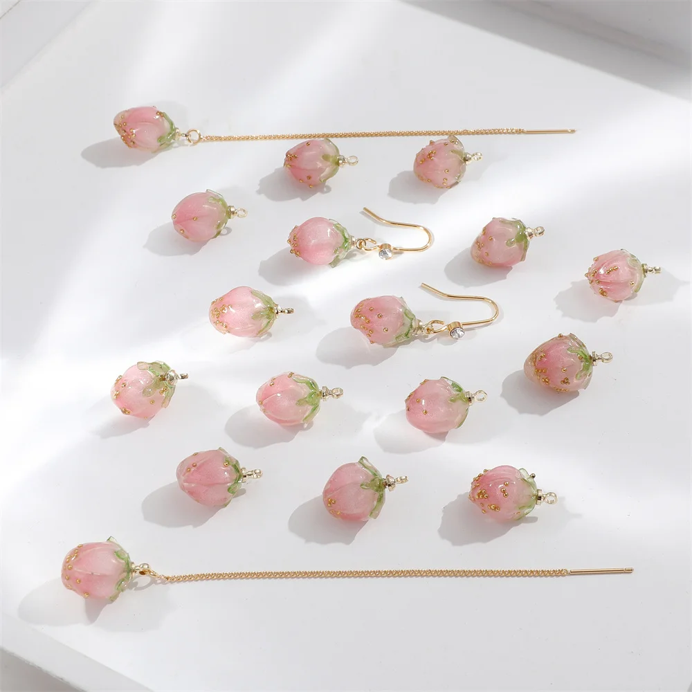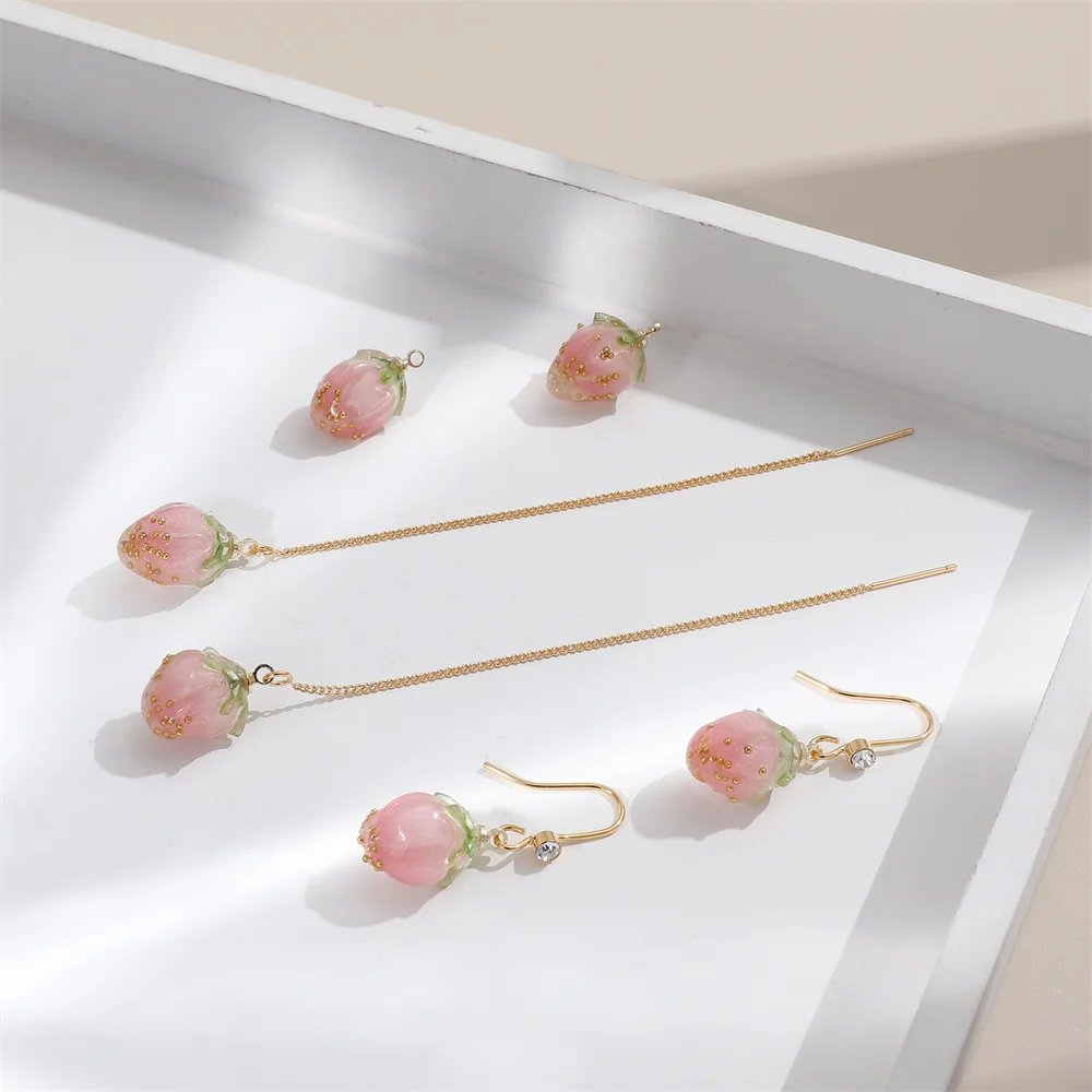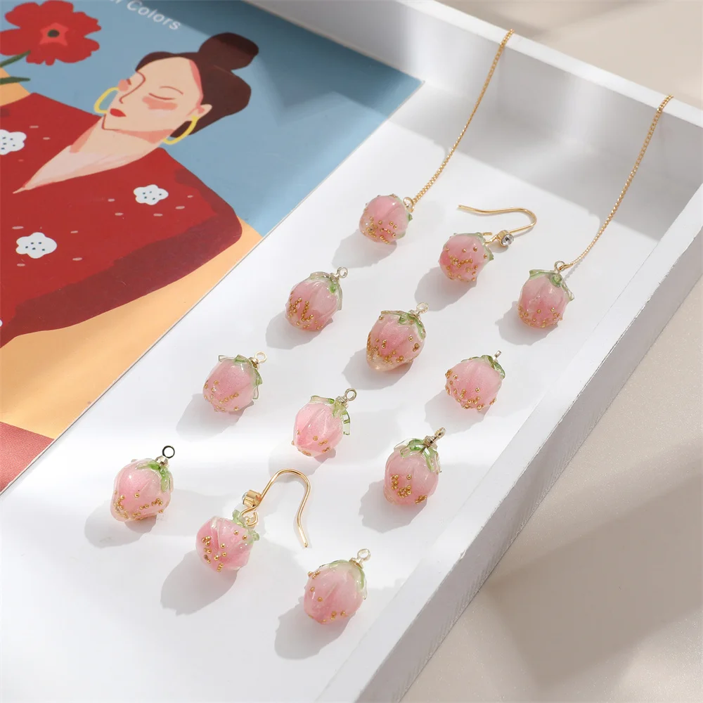 ZW41 Strawberry Resin Necklace Pendant Handmade Hairpin Bracelet Necklace Handmade Diy Material Earrings Jewelry Accessories.